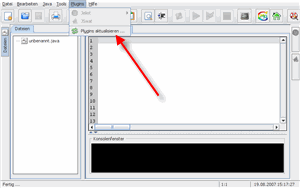 EJE verfügt über eine Plugin-Schnittstelle, die es erlaubt externe Anwendungen direkt in EJE zu integrieren. Eine Übersicht über die verfügbaren Plugins finden Sie hier . Über den Menüpunkt im Menü können die Plugins aktualisiert werden. Der Aktualisierungsprozess wird exemplarisch am Plugin Jeliot beschrieben. |