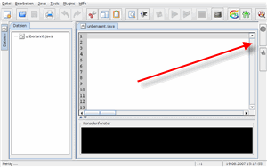 Sie können auf die Plugins über die Schalterleiste am rechten Rand der Anwendung zugreifen. Je nach Konfiguration des Plugins ist die Ausführung über diese Leiste an bestimmte Zustände des aktuell geöffneten Dokuments sein. So können bestimmte Plugins nur angewendet werden, wenn der Quelltext des aktuelle Dokuments zuvor compiliert und nicht mehr modifiziert wurde. Weitere Möglichkeiten und Einstellungen finden Sie im Menü . |