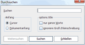 Cursor | Die Suche beginnt an der aktuellen Cursorposition und endet vor dieser. |