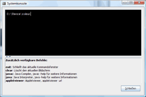 Neben den erweiterten Funktionen unterstützt die Systemkonsole alle Kommandos, die auch auf Ihrem System installiert sind. Die Systemkonsole kann man als nicht-modalen Dialog (Standard) oder als eigenen Prozess in einer separaten JVM starten. Dies hat den Vorteil, dass man den Editor schließen, die Konsole aber weiterhin offen halten kann. Weitere Informationen zu den Einstellungen finden Sie hier .