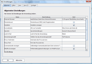 Look & Feel: Auswahl zwischen Cross-Plattform Look&Feel (Metal), System- oder Kunststoff Look&Feel (Standard). Ein Wechsel benötigt Anwendungsneustart